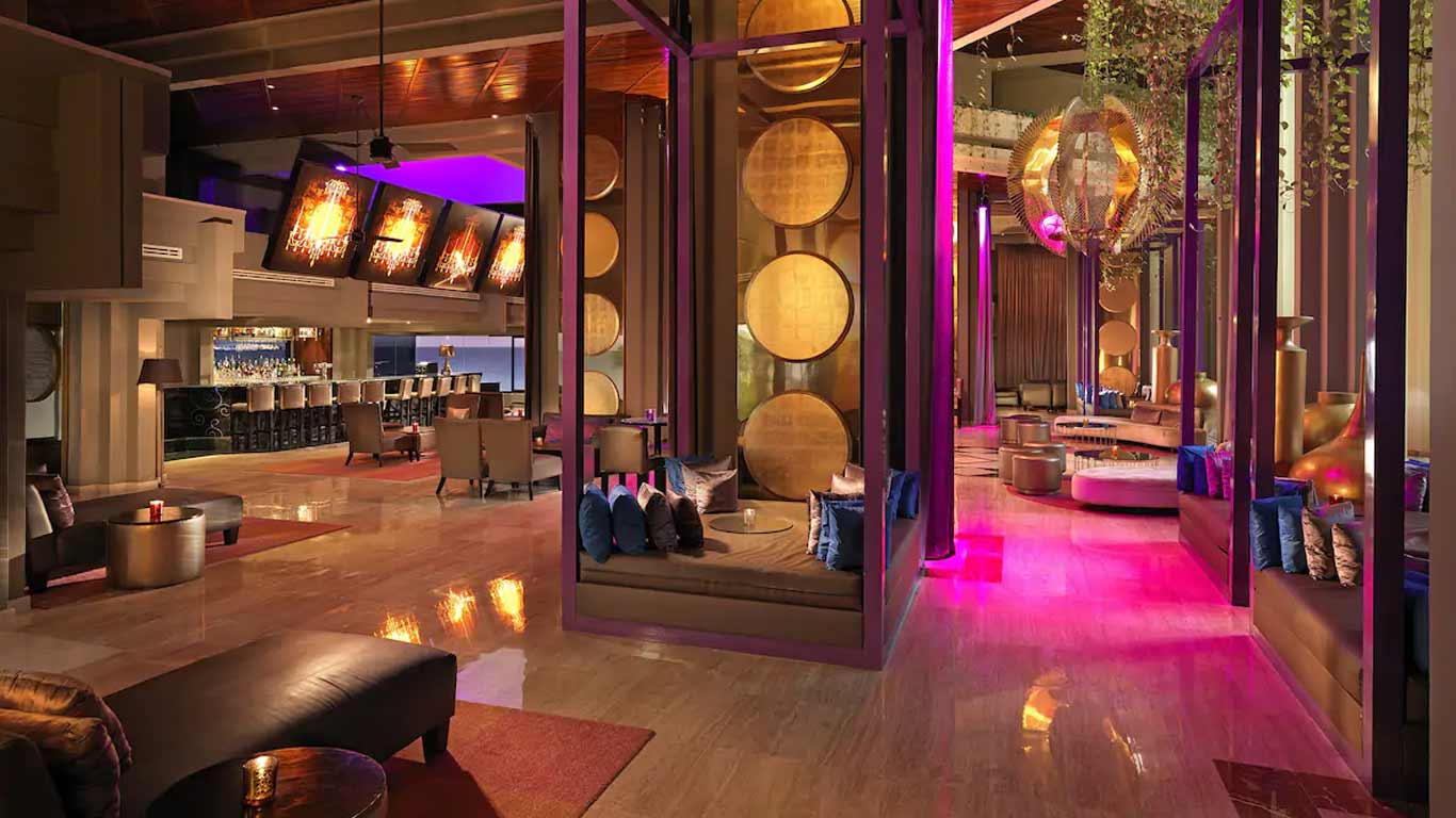 A sizzling before or after-dinner lounge for adults only. Sip on tropical cocktails as you sway to music curated by the DJ in this modern, sensual lounge cloaked in deep reds, browns and white.