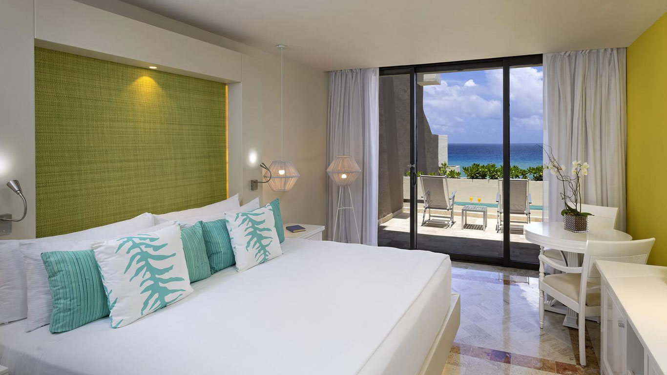 Get the best views of Nichupté Lagoon from the magnificent The Lagoon View Reserve Suite at Paradisus Cancun with a private terrace. It has everything you could ever wish for on a luxury vacation. It includes a comfortable bedroom, with a sofa and an open bathroom with a sensory bath and shower.